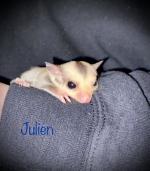 Zorro - My Little Sugar GliderOOP Date : 01/26/2020 Color : Mosaic Genetics : Neutered 7/18/24, 100% carmino het - 25% cremeino het - 50% leu het Remarks : minimal mosaic - pink feet |