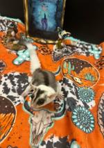 Hairtrigger Colt.44(B&BSG/QBHH)OOP Date : 04/23/2024 Color : BFBB Mosaic Genetics : 50% cream/MR, 33% leu/plat Remarks : Also ringtail.Parents paired 12/23. Pairs first joeys 1 of 2 |