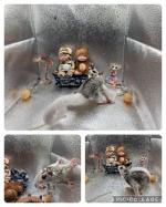 Jameson HBEOOP Date : 06/21/19 Color : Cremeino Mosaic Genetics : 100% het. Leucistic Abby Line Fully Curly sugar glider! Remarks : Paradox spot on shoulder. *New genetic mutation! Covered in rows of curls!* |