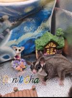 FreakLikeMe Sugarkisses OOP Date : 2025 Color : BFBB Mosaic Genetics : 33 Creme ( proved out Leu) Remarks : Not powdered, joeys born this way. I call Tortoiseshell Smoked Line |